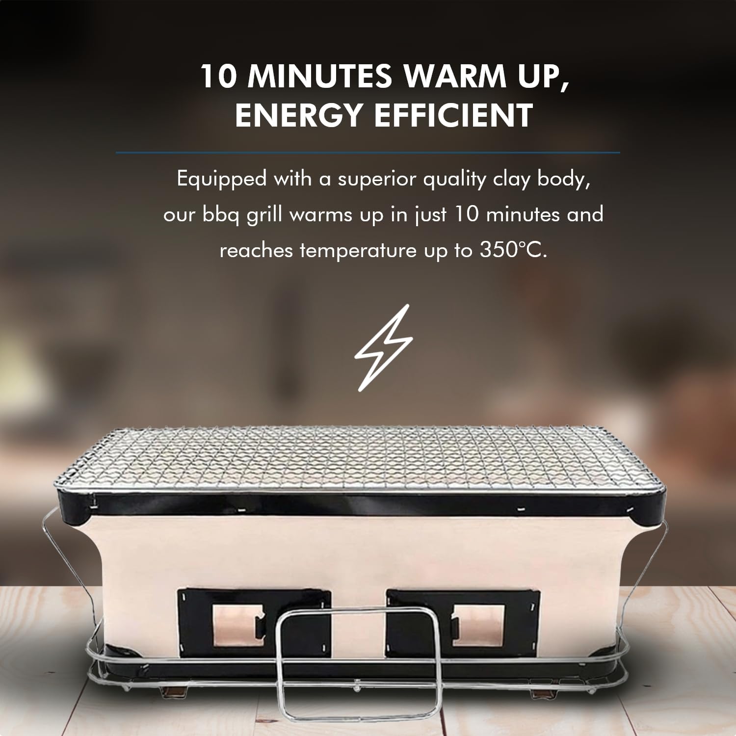 - 10 MINUTES WARM UP, ENERGY EFFICIENT - Equipped with a superior quality clay body, our bbq grill warms up in just 10 minutes and reaches temperature up to 350°C. Enjoy the earthy aromas of our clay firebox that offers a real barbecue experience anywhere, anytime.